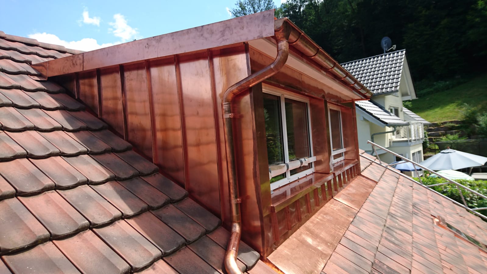 Lukarnen, Kamineinfassungen, Dachrinnen und Ablaufrohre führen wir präzise nach Ihren Wünschen aus und unterbreiten Ihnen die verschiedenen Möglichkeiten.