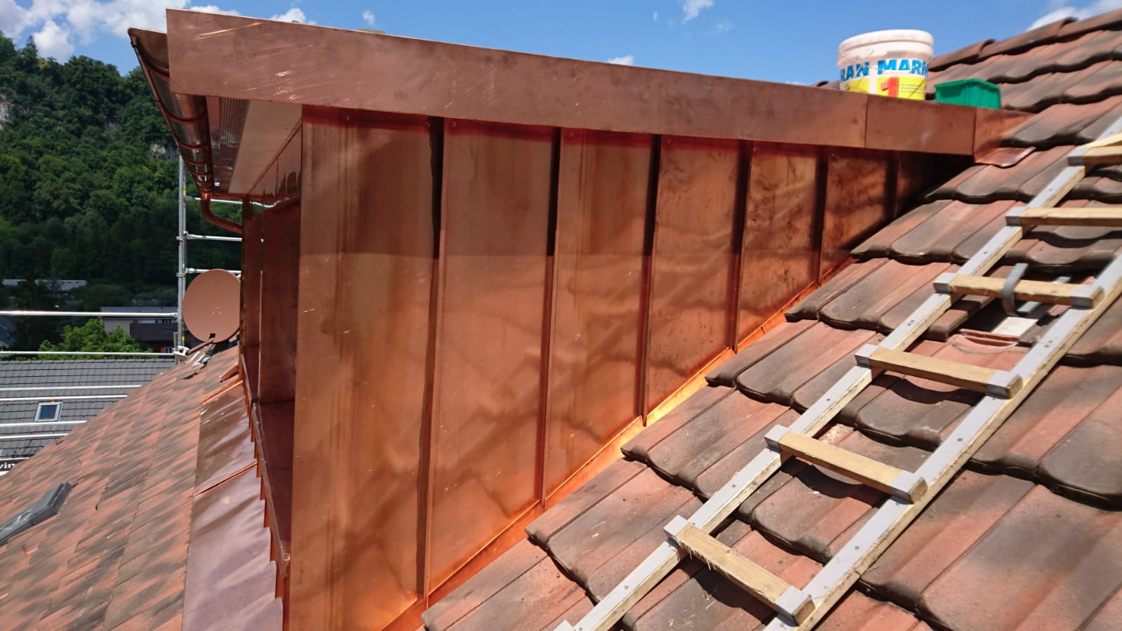 Lukarnen, Kamineinfassungen, Dachrinnen und Ablaufrohre führen wir präzise nach Ihren Wünschen aus und unterbreiten Ihnen die verschiedenen Möglichkeiten.